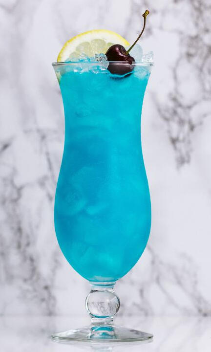 A pinch of amaretto, a splash of blue curacao, and chilled